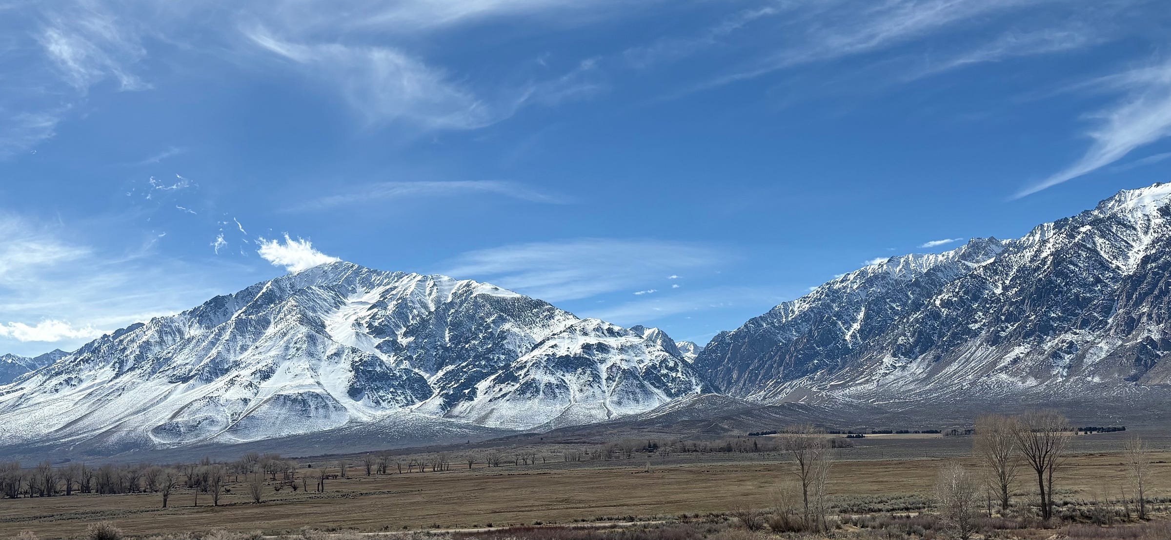 The white feather like plume coming off the summit of Mount Tom is spindrift…